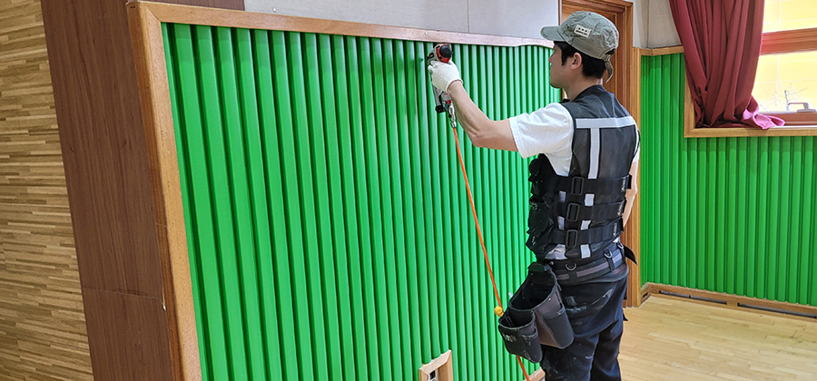 ½Ã°øÆÀÀº ÇлýµéÀÇ ¾ÈÀüÇÑ È°µ¿ÀÌ °¡´ÉÇϸç, ³»±¸¼ºÀÌ °ÇÑ »õ·Î¿î ¾ÈÀüÄí¼ÇÀ» ¿Üº®¿¡ ¼³Ä¡ÇÏ¿© ÀÇ·Ú¸¦ ¿Ï¼öÇß½À´Ï´Ù.